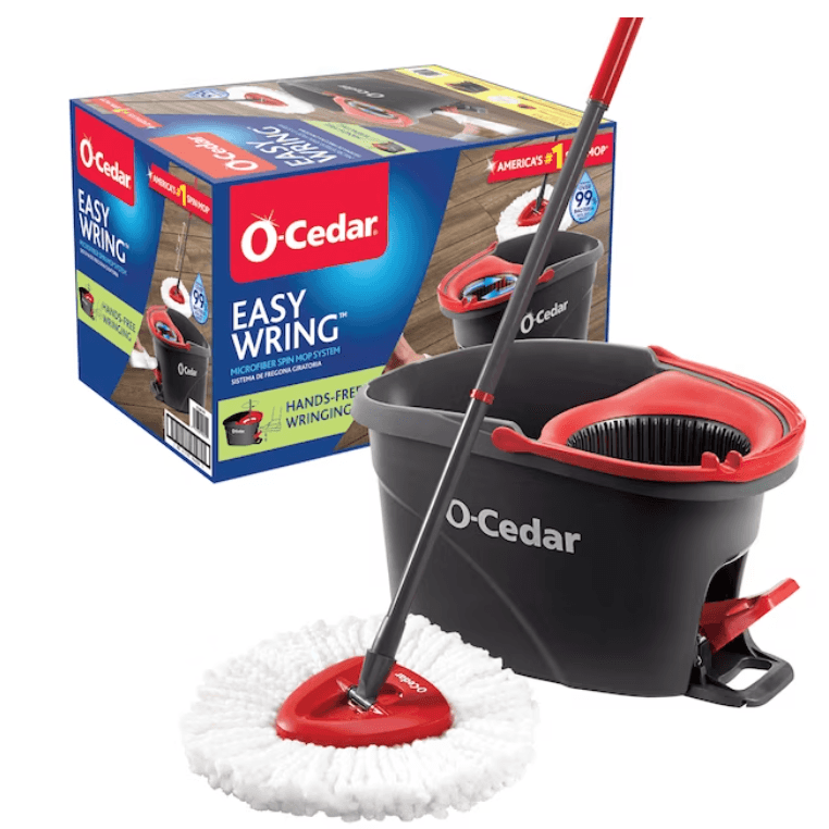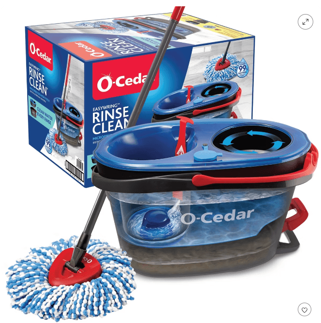 | 1 | O‑Cedar EasyWring RinseClean Spin Mop | Dual-tank bucket (separates clean & dirty water), foot-activated hands-free wringing, triangular microfiber mop head | Target / Home Depot etc. | ~$49.99 US |