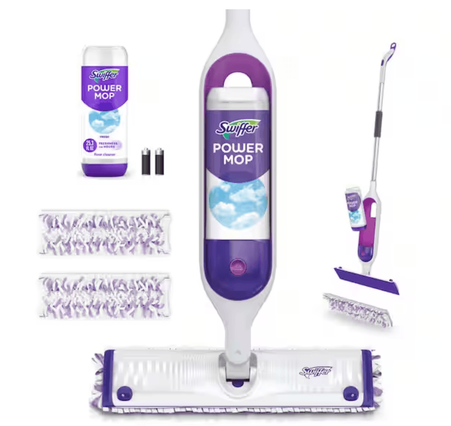 | 5 | Swiffer PowerMop | Spray mop with built-in cleaning solution reservoir, 300+ scrubbing strips on pad, lightweight and easy | Home Depot / Target / Amazon | ~$30 US |